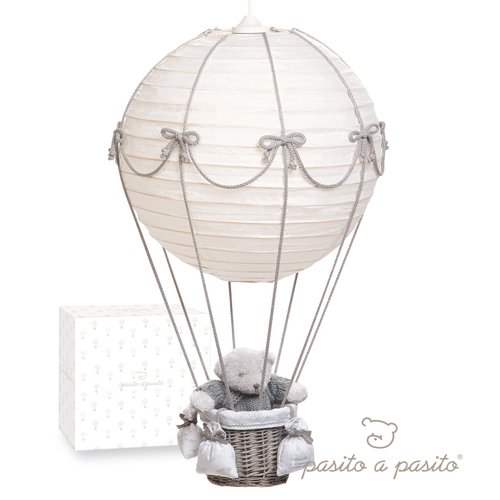 Pasito A Pasito Lampe Montgolfière Ours Toile de Jouy Gris 70x 40xcm